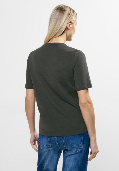 Das Basic T-Shirt von CECIL ist ein unifarbenes Kurzarmshirt mit Rundhals, das durch seine Flammgarn Optik und die angenehme Baumwollqualität besticht. Mit seiner blickdichten Verarbeitung ist es ein vielseitiges Must-have für jede Gelegenheit. T-Shirt Basic Unifarbe Rundhalsausschnitt Flammgarn Optik Material: 100% Baumwolle