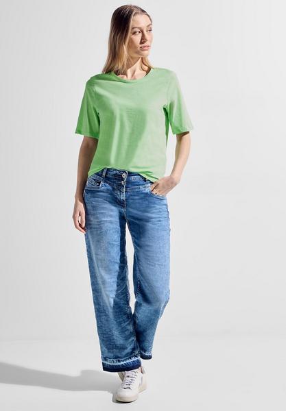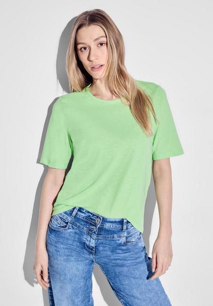 Das Basic T-Shirt von CECIL ist ein unifarbenes Kurzarmshirt mit Rundhals, das durch seine Flammgarn Optik und die angenehme Baumwollqualität besticht. Mit seiner blickdichten Verarbeitung ist es ein vielseitiges Must-have für jede Gelegenheit. T-Shirt Basic Unifarbe Rundhalsausschnitt Flammgarn Optik Material: 100% Baumwolle