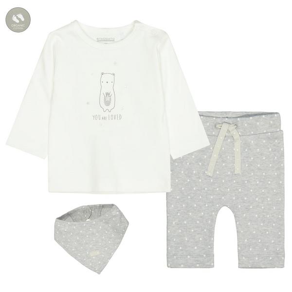 Ein perfektes Geschenk für den Nachwuchs! Mit einem niedlichen Set aus Hose, Langarmshirt und Tuch haben Sie das perfekte Geschenk für die nächste Baby-Party oder einfach als Set für Ihren kleinen Schatz.