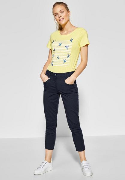 Dein Begleiter für wärmere Tage! Diese Capri Hose überzeugt mit super leichten Material und sommerlicher 7/8 Länge. Im Tight Fit, mit hoher Leibhöhe, sitzt sie enganliegend und zeichnet eine schöne Silhouette. Auch die Hosenbeine sind schmal geschnitten. Das Material punktet mit Baumwolle und Stretchanteil. Lässt sich easy kombinieren und bietet dir den besten Tragekomfort!\n\n\n Tight Fit\n 7/8 Länge\n High Rise\n 5-Pockets Style\n Slim Legs\n 5-Pockets Style\n Softer Materialmix\n Maße bei Inch-Größe 26/26 ca.:\n Innenbeinlänge 65cm, Leibhöhe 28cm, Fußweite 15cm\n Material: 96% Baumwolle, 4% Elasthan