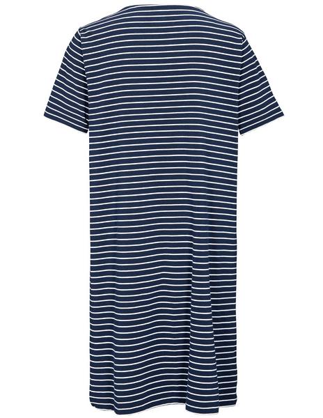 Dieses bequeme Nachthemd von BASEFIELD garantiert Ihnen angenehme Nächte! Die softe Materialqualiät und der legere Schnitt versprechen höchsten Komfort. softe Cotton-Modal Qualität Ringel-Design Wording-Print auf der Vorderseite Rundhalsshirt verlängerte Rückseite In verschiedenen Farben erhältlich.