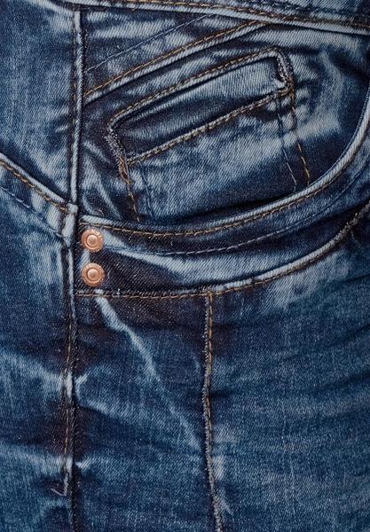 Neue Denim gesucht. Dann kommt hier vielleicht genau das Richtige! Mit dem allover Crash-Effekt sorgt sie für eine lässige Ausstrahlung und die dunkelblaue Waschung betont den Look noch zusätzlich. In der Loose Fit Passform sitzt die Denim entspannt und die Hosenbeine sind schmal zulaufend geschnitten. Der klassische 5-Pockets Style rundet das Design stimmig ab.\n\n\n Loose Fit Denim\n Crash-Effekt\n Middle Waist\n Tapered Legs\n 5-Pockets Style\n Maße bei Größe 27/32 ca.:\n Innenbeinlänge 81cm, Saumweite 16cm\n Material: 67% Baumwolle, 31% Polyester, 2% Elasthan, Enthält nichttextile Teile tierischen Ursprungs.