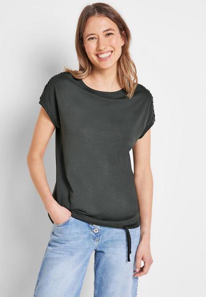 Feel free! Feminines Damen T-Shirt von CECIL mit U-Boot Ausschnitt. Das Tunnelzugband im Saum und der Kurzarm sorgen für einen bequemen Fit. Hingucker sind die Raffungen auf den Schultern, die dem unifarbenen Shirt seinen ganz individuellen Look geben. T-Shirt Unifarbe Tunnelzugband im Saum U -Boot Ausschnitt Geraffte Schultern Maße bei EU-Größe M ca.. Länge 67 cm, Brust 110 cm, Saumweite 112 cm Material: 50% Modal, 50% Baumwolle