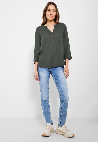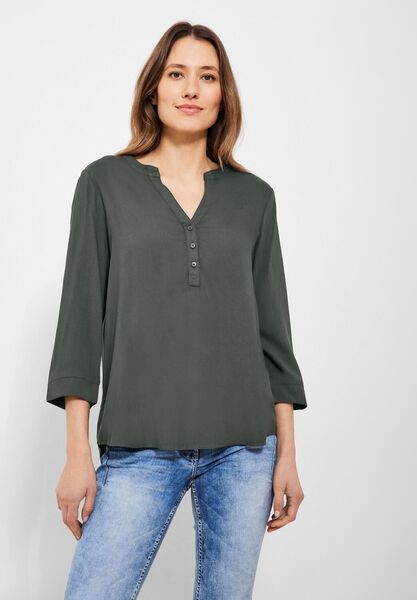 Ready to Spring! Lässige, unifarbene Damenbluse von CECIL in einem Tunikastyle mit 3/4 Ärmeln. Ein legerer Fit mit geschlitztem Rundhalsausschnitt, der mit einer kurzen Knopfleiste ein Upgrade bekommt. Die Viskose trägt sich leicht und angenehm.