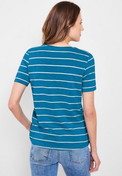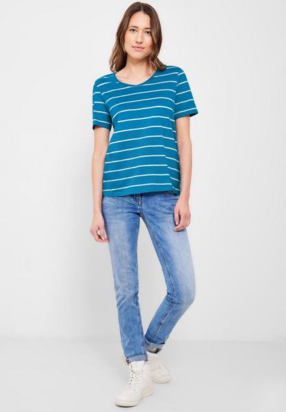In Basics we trust! Damen T-Shirt von CECIL, das im sportlichen Streifenmuster begeistert. Die softe Baumwollqualität erhält durch die Flammgarnoptik einen modernen Look. Ein abgerundeter V-Ausschnitt unterstreicht den sportlich-lässigen Look des Basicstyles perfekt. T-ShirtStreifenmusterAbgerundeter V-Ausschnitt Maße bei EU-Größe M ca.: