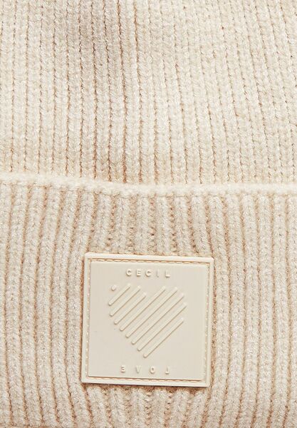 With love! Kuschelige Damen Strickmütze von CECIL. In trendstarker Unifarbe lässt sie sich vielseitig kombinieren und verleiht so jedem Outfit das gewisse Etwas. Das Silikonbadge auf dem breiten Umschlag ist ein toller Hingucker.