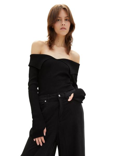off shoulder rib pullover - 14482/deep black Artikel-Nr.: 1039515