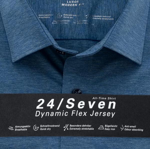 Das 24/Seven-Dynamic-Flex-Shirt begeistert auch im OLYMP Luxor modern fit Business-Segment mit großer Farbauswahl, maximaler Bewegungsfreiheit und dynamischer Formstabilität. Es präsentiert sich bequem wie ein T-Shirt und mit dem smarten New Kent stilvoll wie ein Hemd. Die atmungsaktiven, schnelltrocknenden, elastischen, bügelleichten und geruchshemmenden Eigenschaften des stretchigen Baumwolle-Elasthane-Mix machen dieses innovative Businesshemd zu einem unschlagbaren Allrounder.