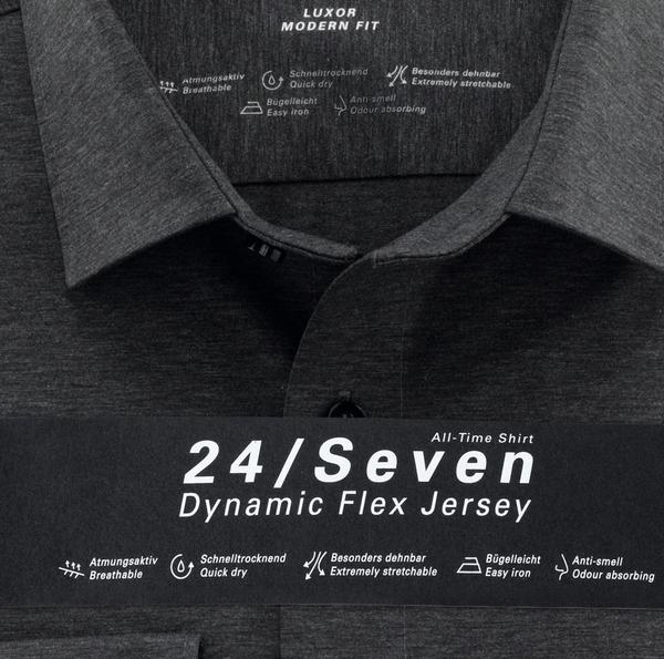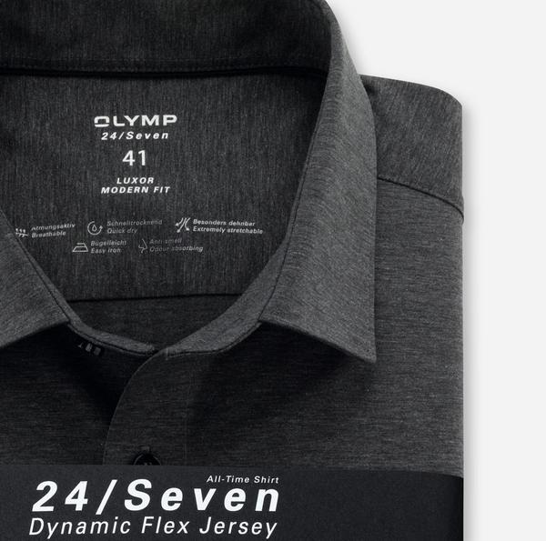 Das 24/Seven-Dynamic-Flex-Shirt begeistert auch im OLYMP Luxor modern fit Business-Segment mit großer Farbauswahl, maximaler Bewegungsfreiheit und dynamischer Formstabilität. Es präsentiert sich bequem wie ein T-Shirt und mit dem smarten New Kent stilvoll wie ein Hemd. Die atmungsaktiven, schnelltrocknenden, elastischen, bügelleichten und geruchshemmenden Eigenschaften des stretchigen Baumwolle-Elasthane-Mix machen dieses innovative Businesshemd zu einem unschlagbaren Allrounder.
