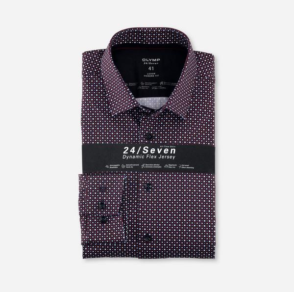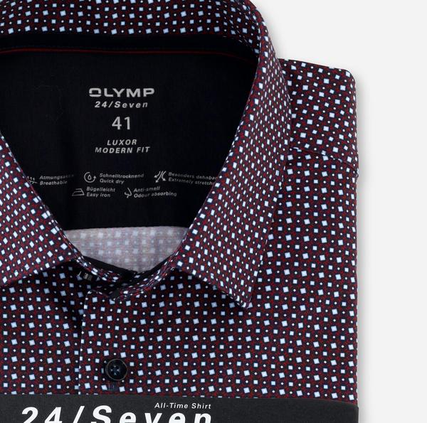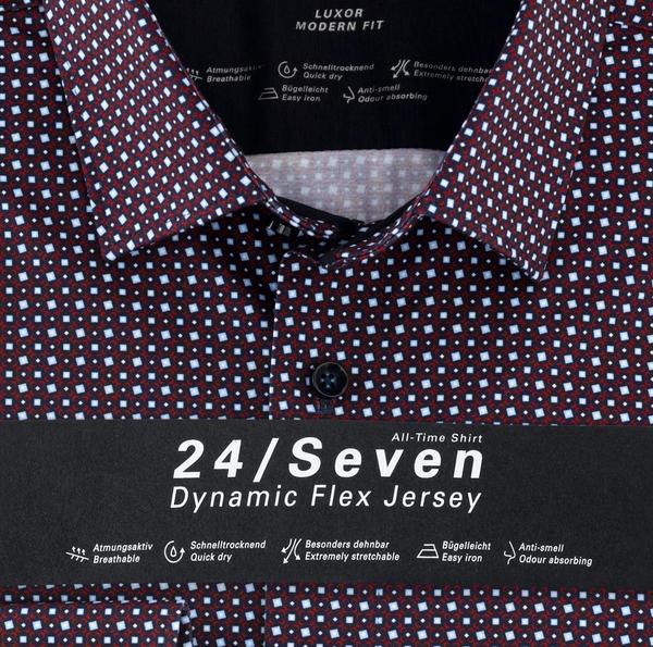 Maximale Bewegungsfreiheit, Formstabilität, Casual-Lässigkeit und Business-Seriosität – das 24/Seven-Jersey-Hemd erweitert die Serie OLYMP Luxor modern fit um eine besonders stylishe Variante. Spezielle Baumwollgarne erhalten in der innovativen Mischung mit Elasthanfasern eine unvergleichbar lässige, fein strukturierte und dynamische Textur. Sie unterstreichen den leicht taillierten Schnitt knitterfrei und begeistern durch ihren hautsympathischen Tragekomfort sowie einmalige Pflegeeigenschaften. Das klassische Römerstreifen-Dessin in harmonischer Farbstellung sowie ein smarter Kent sorgen ganz relaxed für die professionelle Performance, egal ob virtuell aus dem Homeoffice oder real life unter KollegInnen. Mit attraktivem Kontrastbesatz, ohne Brusttasche.