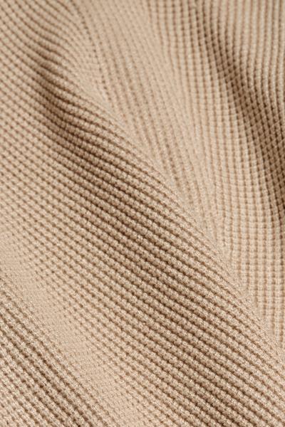 * Strukturstrick aus pflegeleichtem Materialmix mit Viskose * Großzügiger V-Ausschnitt * Rippstrick an Ausschnitt, vorderer Mitte, Ärmelenden und Saum * Überschnittene Schultern * Gerade, lockere Passform