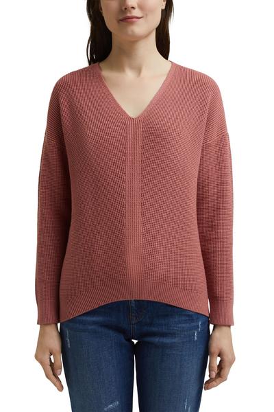 * Strukturstrick aus pflegeleichtem Materialmix mit Viskose * Großzügiger V-Ausschnitt * Rippstrick an Ausschnitt, vorderer Mitte, Ärmelenden und Saum * Überschnittene Schultern * Gerade, lockere Passform