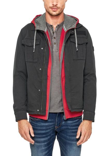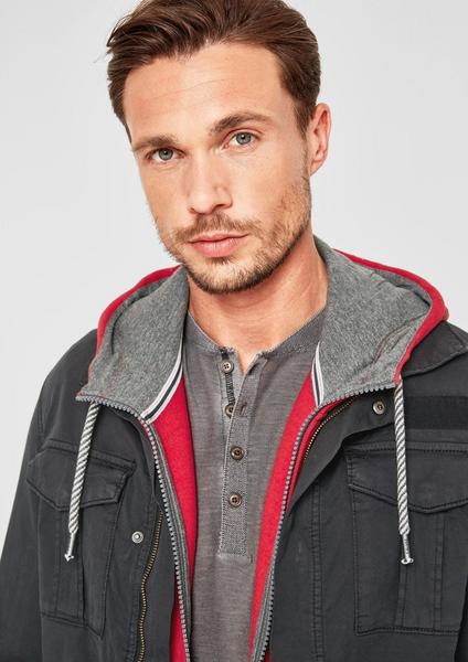Kragen, verdeckter Reißverschluss und Druckknopfblende, zwei Brusttaschen und zwei Eingrifftaschen im Field-Look, tonige Tape-Applikation vorn, gummierter Label-Patch am Ärmel, Manschette mit Druckknöpfen, gewaschene Optik, reguläre Passform; Rückenlänge bei Größe M ca. 72 cm, robuste Twill-Qualität aus Baumwolle mit Stretchkomfort; ungefüttert; niedriger Wärmegrad