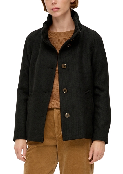 Die leicht wärmende Twilljacke aus Wollmix ist ideal für Übergangswetter und herbstliche Styles. Der Stehkragen aus Rippstoff schützt dich vor Wind und kühlere Temperaturen. Egal, ob du die Jacke mit Skinny Jeans oder Wide Leg Hose kombinierst, durch ihren Slim Fit und dem kurzen Schnitt erzeugt sie eine schmeichelnde Silhouette.