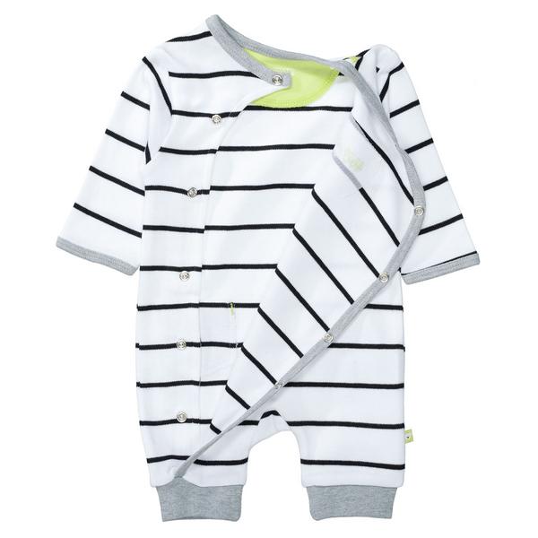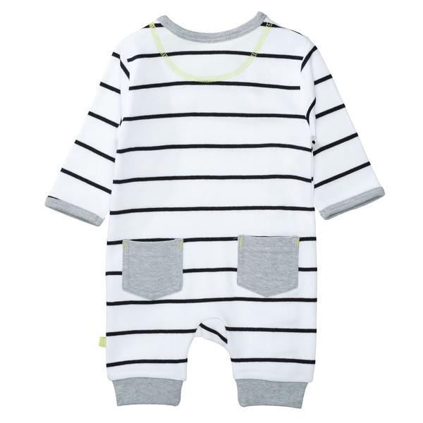 100% Bio-Baumwolle Langarm Streifen-Design mit zuckersüßem Stitching auf der Vorderseite aufgesetzte Gesäßtaschen verschließt mit seitlich verlaufender Druckknopfleiste