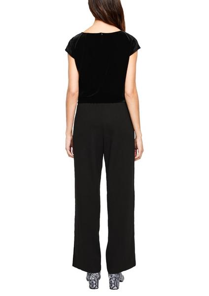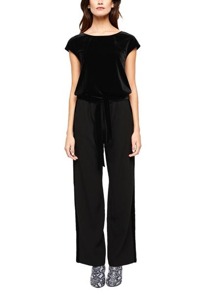 edle Optik mit schimmerndem Samt-Oberteil und Webhose mit feiner Struktur, U-Boot-Ausschnitt mit Reißverschluss an der Rückseite, mit Bindegürtel aus Samt und Crêpe, Gummibund in der Taille für optimalen Halt, Galonstreifen aus Samt, Regular Fit mit weitem, geradem Beinverlauf, Materialmix aus elastischem Samt und Crêpe-Webware,