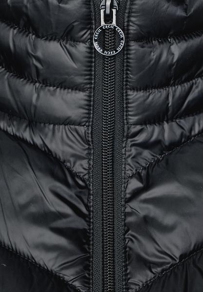 Hey Sporty! Die gesteppte Jacke von CECIL überzeugt mit recyceltem, daunenfreien Futter und einem leichten und atmungsaktiven Material. Sie hat seitliche Taschen und einen Reißverschluss vorne. Der Stehkragen wärmt den Hals und so trägt sich die Jacke den ganzen Herbst und Winter lang ganz fabelhaft.\n\n\n Sportive Jacke mit Steppung\n Seitliche Taschen\n Recyceltes, daunenfreies Futter\n Leichtes und atmungsaktives Material\n Reißverschluss\n Maße bei EU-Größe M ca.:\n Länge 66 cm, Brust 54 cm, Saumweite 57 cm\n Material: Oberstoff: 100% Polyester, Futter: 100% Polyester, Füllung: 100% Polyester