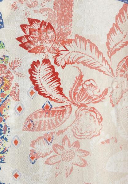 Musterlieblinge vereint: Die Bluse von CECIL hat einen tollen Mustermix im Paisley-Design und hat so eine tolle Ausstrahlung. Der geschlitzte Rundhalsausschnitt setzt einen femininen Akzent und das Tunnelzugband am Saum ist super lässig. Die 3/4 Ärmel sitzen durch den Gummizug locker und das verlängerte Rückteil umspielt die Hüfte.\n\n\n Bluse mit Patchworkmuster\n Paisley-Design\n Geschlitzter Rundhalsausschnitt\n Tunnelzugband am Saum\n Hinten etwas länger\n 3/4 Ärmel mit Gummizugband\n Maße bei EU-Größe M ca.:\n Länge 67 cm, Brust 55 cm, Saumweite 58 cm\n Material: 100% Viskose
