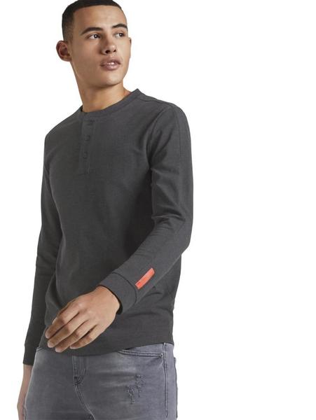 piquee henley Tee - 10723/Black Non-Solid
