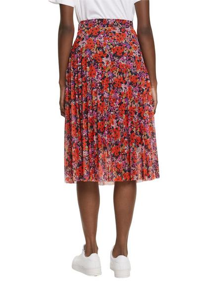 * Bund mit Gummizug und Tunnelzugkordel * Midi-Länge * Pflegeleichter Netzstoff in plissierter Optik * Allover Blumen-Dessin * Blickdichter Unterrrock