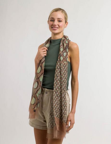 Eleganter Hingucker: Der Schal von FRAAS mit einem geometrischen Muster, das die Größe in der Hälfte ändert. Dieser Größenwechsel macht den Schal besonders interessant und sorgt für einen besonderen Look am Hals. Der 70 x 180 cm große Schal besteht aus Polyester, das zu 100 % aus gebrauchten PET-Flaschen gewonnen wurde. Außerdem wurde er CO2-neutral hergestellt.