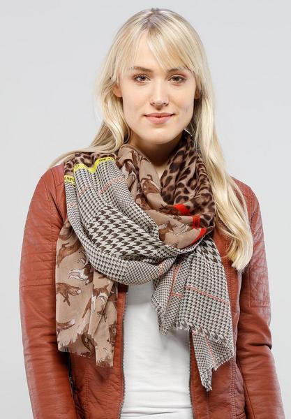 Muster-Mix Deluxe! Animal-Print meets Karo - was für eine coole Kombination. Die warmen Farbtöne des Polyester-Schals lassen sich leicht zu Ihrem Alltags-Outfit kombinieren und ergänzen so Ihren Style optimal!