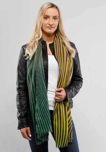 TH!NK - Unsere gestreifte Stola aus 100% recyceltem Polyester - hergestellt aus gebrauchten PET-Flaschen - sorgt für ein angenehmes und wohligesTragegefühl. Jedes Stück aus recycelten Fasern kann nicht nur Ressourcen schonen, Abfall vermeiden und die Umwelt schützen – es gibt auch eine Extraportion gutes Gefühl beim Tragen.