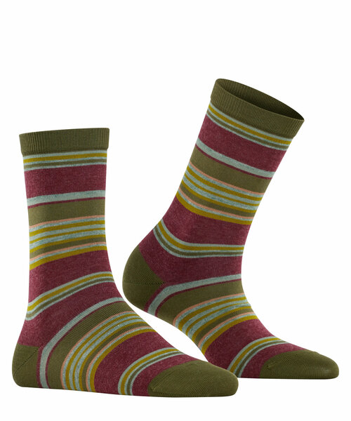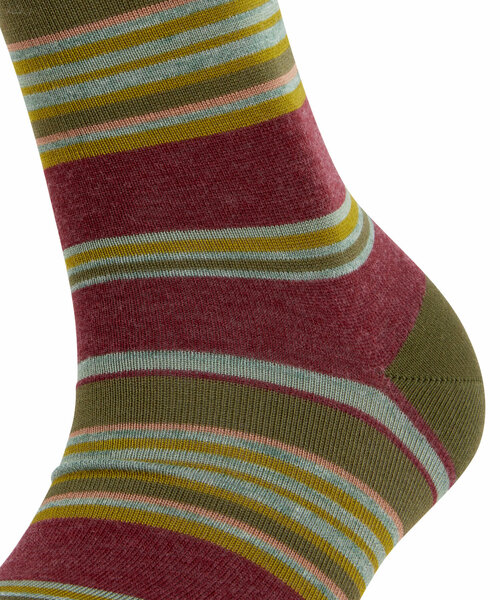 Dank dem Einsatz einer hochwertigen, gasierten und merzerisierten Baumwolle in Kombination mit einer Wolle-Mischung vereint dieser modische Strumpf sowohl hohe Farbbrillanz als auch wärmende Eigenschaften. Die raffinierte Stripe-Dessinierung in modischen Farbkombinationen lässt sich zu unterschiedlichsten Styles kombinieren. Dank der perfekten FALKE-Passform und der verstärkten Belastungszonen sind sowohl optimaler Halt als auch optimale Haltbarkeit garantiert.