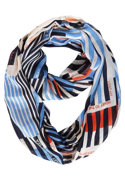 Lost my heart: Cosy Loop von CECIl, der einen beschwingt durch den Frühling bringt. Dafür sorgt der coole Farbmix des grafischen Prints und auch die Schriftzüge werden schnell zum Hingucker. Das softe Viskosematerial liegt angenehm am Hals und fällt locker-luftig.