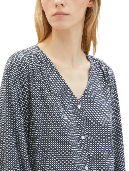 printed V-neck blouse - 32365/navy geometrical des