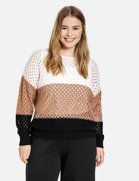Luftiges Lochmuster aus Organic Cotton, Blockstreifen-Dessin