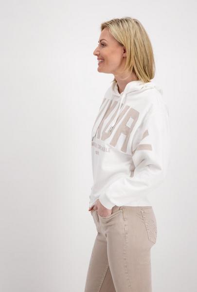Entdecken Sie mit diesem Jersey-Sweatshirt von monari Ihre Lieblingskombis für angesagte Looks. Das vielseitige, gerade geschnittene Sweatshirt kommt mit Kapuze, weiten Ärmeln, Bündchen an den Ärmelenden und überschnittenen Schultern. Ein kontrastfarbiges 3-D-Wording aus Stoff mit glänzender Lurex-Stickerei schmückt die Vorderseite von Ärmel zu Ärmel und sorgt somit für einen stilvollen Hingucker-Effekt. Ein hoher Tragekomfort ist durch den Baumwoll-Mix garantiert! Passend zur Slim-Fit-Jeans mit funkelnden Strassdetails.