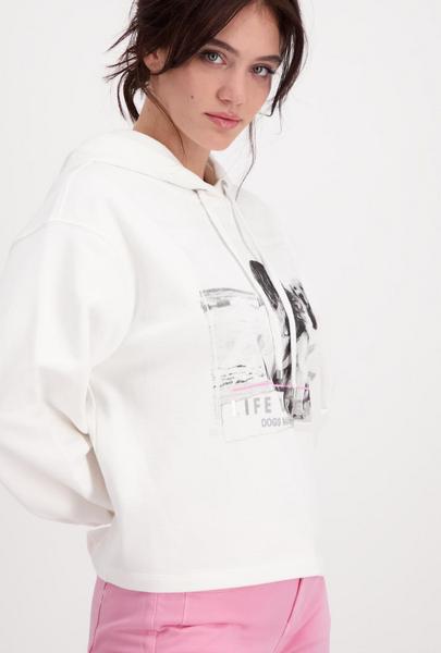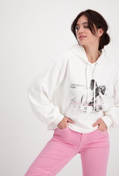 Zaubern Sie im Handumdrehen einen coolen Look mit diesem Kapuzen-Sweatshirt von monari. Die gerade Form wird von leicht überschnittenen Schultern mit verlängertem, abgerundetem Saum ergänzt. Die Vorderseite wird von einem coolen Druck mit einer Frau und einem Hund sowie glamourösen Schriftdetails stilvoll geschmückt, während die angenehme Sweat-Qualität aus hochwertigem Baumwoll-Mix für ein superwohliges Tragegefühl sorgt. Ein tolles Langarm-Piece zu einer knalligen Hose mit ausgestellten Beinabschlüssen.