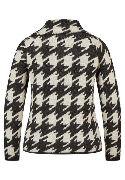 Hahnentrittmuster liegen absolut im Trend und machen einfach was her. Das beweist dieser Pullover. Der Kragen lässt sich mittels Zipper mit Band in Kontrastfarbe variieren. Kombinieren Sie den Pullover mit einer schwarzen Jeans und angesagten Loafern. Damit erzeugen Sie einen Unique-Style.
