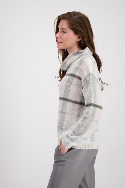 Der Pullover verfügt über einen kuschelweichen Griff und ein vollflächigen Jacquard Stoff mit Karomuster. Hier harmonieren Optik, Form und Qualität hervorragend miteinander und sorgen für maximalen Komfort und ein feminines Auftreten.