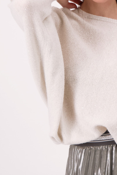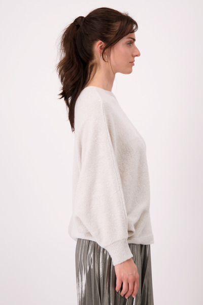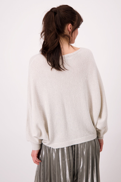 Feine Pailletten schmücken den Pullover mit Fledermausärmel und setzen dezente Highlights. In Kombination mit dem weiten Schnitt wirkt der Pullover sportlich elegant.