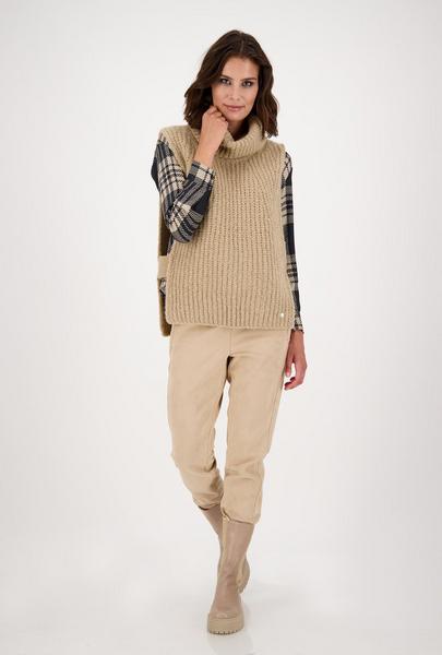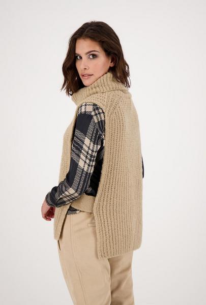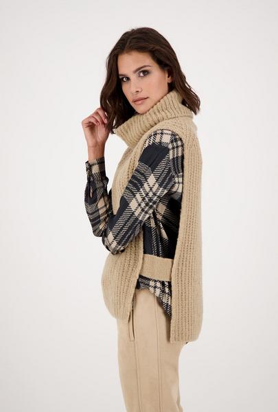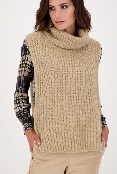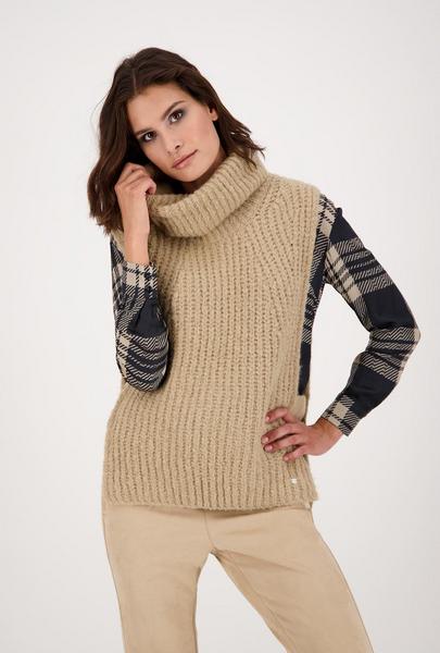 Der Grobstrick und die Qualität dieses monari Pullunders hält Sie warm und bietet einen hohen Tragekomfort. Eine gerade Form mit hohem Rollkragen, offenen Seiten mit Strickriegeln und die leicht verlängerte Rückseite wird Sie bezaubern. Das Design mit Allover-Perlfangmuster lässt sich zu unzähligen Ihrer Outfits kombinieren und verspricht ein stilvolles Aufteten. Machen Sie sich eine Freude.