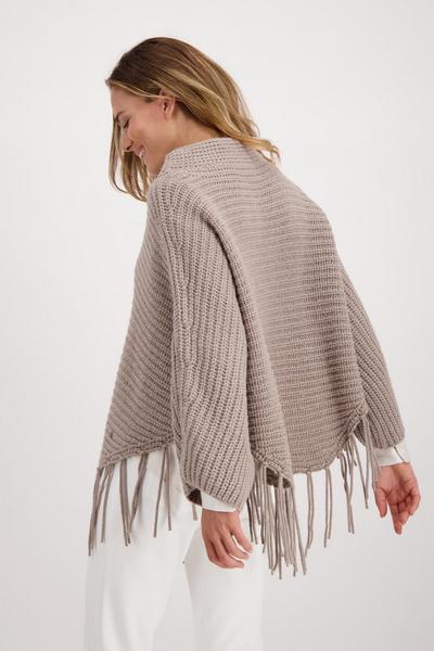 Unser stilvoller Kombi-Liebling von monari: der Poncho in Perlfang-Struktur. Die figurumspielende Schlupfform mit ⅞-Arm und einem Stehkragen kommt mit den langen Fransen am Saum immer perfekt zur Geltung und sorgt dank der Verarbeitung aus weichem Polyacryl-Baumwolle-Mix immer für einen angenehmen Tragekomfort. Einfach überziehen und gut aussehen lautet hier die Devise. Überzeugen Sie sich selbst und stylen Sie das modische Piece beispielsweise zur hellen Joggerhose.