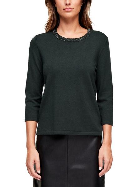 glatter Feinstrick im unifarbenen Design, Rundhalsausschnitt mit Rippblende und Schmucksteinen, Ärmel in 3/4-Länge mit schmalen, gerippten Bündchen, seitlich geschlitzter Saumabschluss mit Rippbund, Regular Fit; Rückenlänge bei Größe 36 ca. 58 cm, softe Strickware aus Viskosemix, Jubiläums-Siegel: Wir feiern unser goldenes Jubiläum! Freuen Sie sich auf ausgewählte Artikel zu runden Preisen. Mehr Informationen und alle Jubiläumsartikel finden Sie unter www.soliver.com/anniversary