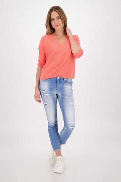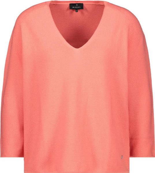 Ausgefallene Pullover Damen waren gestern. Erfreuen Sie sich an diesem schlichten Strickpullover von monari. Die Form für komfortable Trageeigenschaften: Regular Fit, V-Ausschnitt und 3/4 Arm. Der Damen Strickpullover ist im Linksstrick gearbeitet und erhält dadurch seine legere Optik. Die weiche Qualität aus 100% Baumwolle macht den Pullover ohne Kapuze zu einem unkomplizierten Begleiter. Man kann nie genug unifarbene Pullover im Kleiderschrank haben.