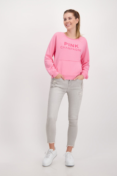 Ein Piece zum Verlieben: das angesagte Langarm-Sweatshirt von monari. Mit dem Modell gelingt Ihnen im Handumdrehen der ultimative Wohlfühl-Look, der sich nicht nur gut anfühlt, sondern auch extrem gut aussieht. Dafür sorgen die herrliche Qualität aus reiner Baumwolle aus kontrolliert biologischem Anbau und die Vorderseite mit einem coolen Schriftdruck und einer stylischen Kängurutasche. Das Sweat-Modell kommt mit gerader Form mit Raglanärmel, einem Rundhalsausschnitt mit kleiner Blende und unversäuberter Schnittkante sowie Ärmelenden und einem Saum mit einem Bündchen. Zusammen mit einer Skinny-Jeans mit funkelnden Akzenten und Reißverschlussdetails ist das leichte Shirt ein trendiger Kombi-Partner für jeden Tag!