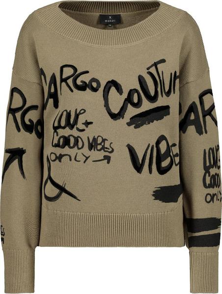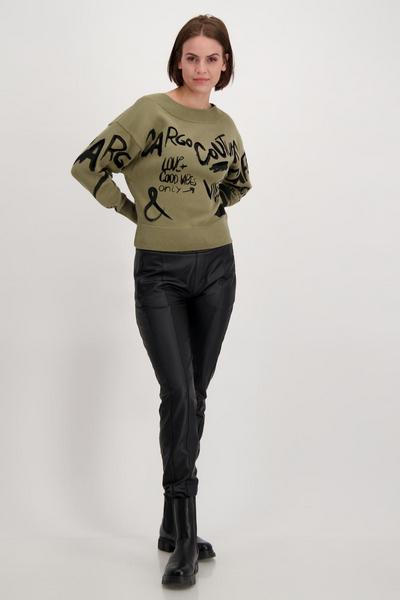 In monari Pullovern fühlen Sie sich am wohlsten. Dann werden Sie dieses Modell mit Sicherheit so sehr lieben wie wir! Die Form: gerade geschnitten mit geripptem Rundhalsausschnitt, gerippten Ärmelenden und einem gerippten Saum. Dank der überschnittenen Schultern lässt sich das Modell lässig und zugleich stilvoll tragen. Dazu versprechen 100% reine Baumwolle einen angenehmen und wohltuenden Tragekomfort. Ein großflächiger, kontrastfarbiger Schriftdruck auf der Vorder- und Rückseite lässt das Piece zum absoluten Highlight avancieren. Hat Potenzial, zum neuen Lieblingsteil zu werden!