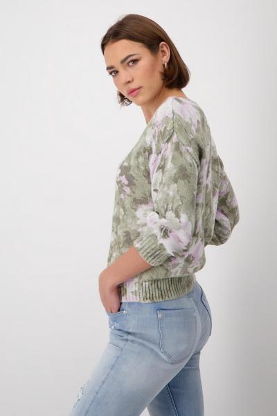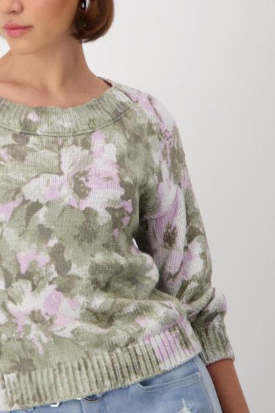 Der Pullover aus 100% Baumwolle zeichnet sich durch ein schönes Blumenmuster und einen gerippten U Boot Ausschnitt aus.