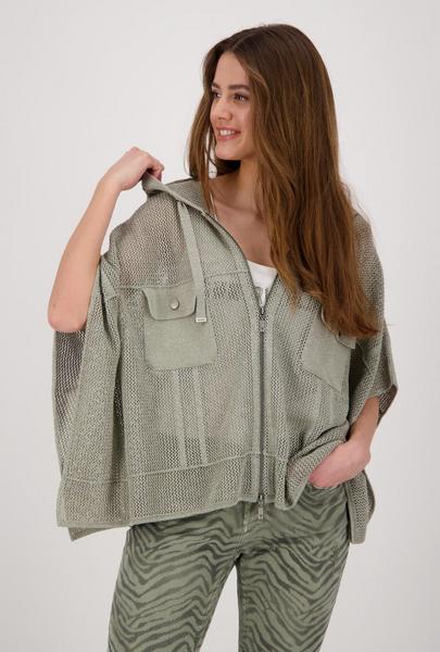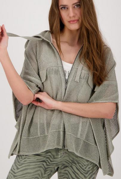 Das raffinierte Cape von monari präsentiert sich als markantes Fashion-Wunder! Eine Kapuze und das Allover-Ajourstrickmuster mit glitzerndem Lurexgarn ergänzen das vielseitige Modell perfekt. Der Fit: Cape-Form mit Kapuze, Halbarm und coolen Cargo-Elementen in Form von zwei aufgesetzten Pattentaschen auf der Vorderseite. Mit einem Zwei-Wege-Reißverschluss können Sie dieses Cape problemlos schließen. Zusätzliche Querteilungsnähte setzten dezente Details und optimieren das Design gekonnt. Hüllen Sie sich in dieses angenehm weiche Piece mit Glamfaktor.
