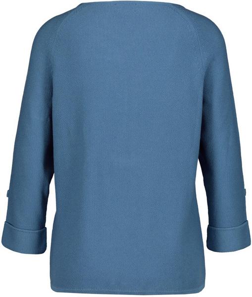 Sportlich lässig präsentiert sich dieser Strickpullover von monari in Allover-Reiskornstruktur. Mit kleinen, glattgestrickten Details, funkelnden Strasssteinchen und Schlaufen auf den Ärmeln avanciert er zu einem echten Hingucker. Sein kastenförmiger Schnitt und die ausgestellten ¾-Ärmel mit Ärmelaufschlag vollenden das stimmige Casual-Gesamtbild.