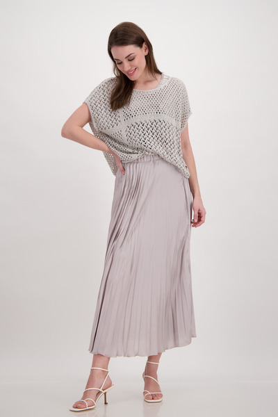 Setzen Sie auf einen entspannten und dennoch glamourösen Look mit diesem Kurzarm Poncho von monari. Der trendige Damen Pullover überzeugt sofort mit seinem kunstvollen Ajourmuster und den funkelnden Strass-Applikationen auf der Vorderseite. Durch die Regular Fit Form mit angedeutetem, überschnittenem Kurzarm können Sie einen lässigen Look kreieren. Die Qualität aus Leinen und Baumwolle garantiert ein angenehmes Tragegefühl.