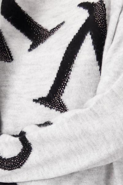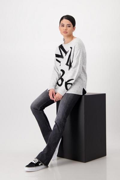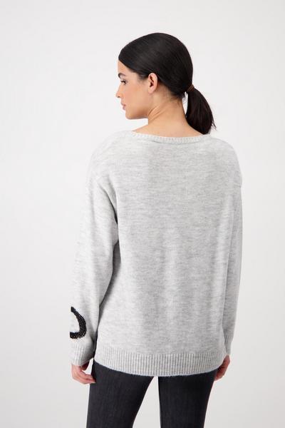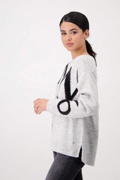 Dieser weiche Pullover verfügt über ein Jacquard Stoff mit funkelnden Schmuckbuchstaben. Seitenschlitze und eine verlängerte Rückseite für zusätzlichen Komfort.
