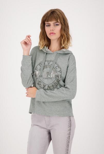 Dieses stylische Kapuzen-Sweatshirt von monari ist auf jeden Fall etwas für Sie! Die Front des Langarm Modells präsentiert sich mit glamouröser Schrift aus Lackdruck und Glitter, die mit funkelnden Strasssteinchen umrandet und geschmückt wird. Regular Fit mit überschnittenen Schultern, Bündchen an Ärmelenden und am Saum sowie eine verlängerte Rückseite. Ganz viel Bequemlichkeit und einen guten Sitz verspricht die elastische Qualität aus fließender Viskose im Mix. Entscheiden Sie sich für diesen grau melierten Hoodie und stylen Sie beispielsweise zur modischen Slim Fit Jeans mit Strassverlauf entlang der Seiten.