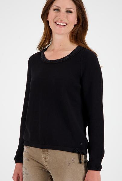 Dieser Reiskorn-Struktur Pullover von monari begeistert auf ganzer Linie. Der Rundhals wird von funkelnden Strasssteinchen geschmückt während der Saum mit Tunnelzug und Bindeband das unifarbene Modell sportiv aufwertet. 100% Baumwolle versprechen zudem einen angenehmen Tragekomfort. Hüllen Sie sich ein!