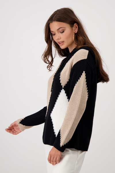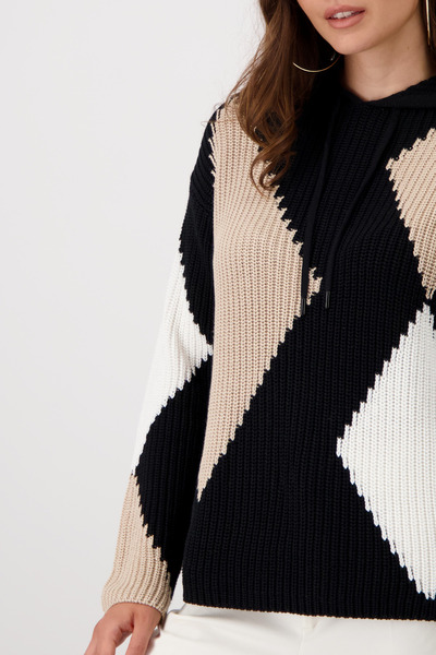 Der Kapuzenpullover lebt von einer hochwertigen Qualität aus Baumwolle. Zudem kommt das Perlfangmuster dank der Rauten stilvoll zur Geltung.